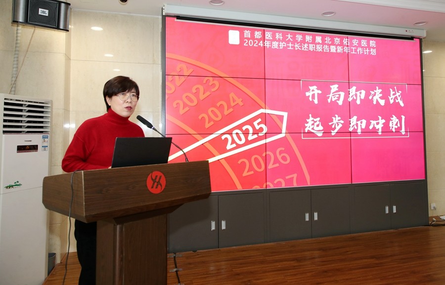 护理部主任张莉莉对2024年度护理工作进行了全面总结。过去一年,北京佑安医院的护理工作扎实稳健推进。无论是提升基础护理质量、优化患者就医体验,还是在人才培养、队伍建设,特别是护理科研等关键领域,均收获了令人瞩目的成绩。每一项成果的背后,都凝聚着全院600多名护士的辛勤汗水与不懈努力。张莉莉主任强调,全体护士长应以此次工作总结汇报会为新的起点,紧紧围绕医院高质量发展目标,以提升整体护理水平为动力源泉,在坚守传统优势的基础上不断创新奋进。