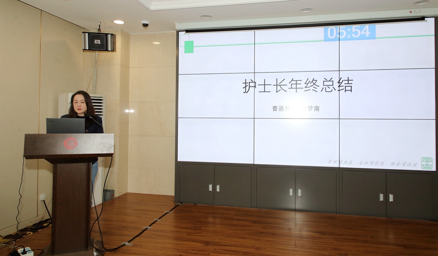 最后,胡中杰副院长对本次汇报会进行了总结发言。胡中杰副院长对护理团队过去一年的辛勤付出及取得的斐然成绩给予了高度评价,对全院护理人员为医院建设和学科发展所做出的积极贡献表达了诚挚感谢。同时,他也寄望各位护士长以此次述职为新的开端,带领全体护理人员继续砥砺前行,为推动医院高质量发展贡献更多力量。