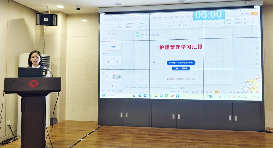 随后,普通外科中心(普通外科)护士长刘梦南、肝病中心三科护理组长刘璐璐、急诊科护理组长刘雪婷三位老师,结合自身2024年赴北医三院进修的宝贵经历,毫无保留地分享了学习体会与实践感悟。她们的分享为在场同仁的临床工作,尤其是科室管理方面带来了全新的启发与思考,拓宽了大家的工作思路。