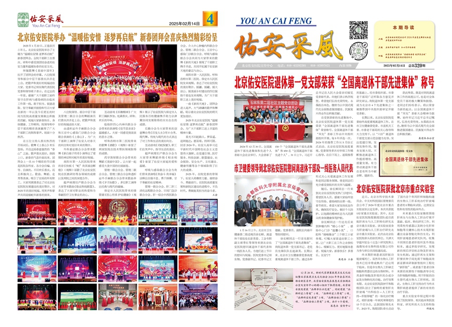2025年,是充满希望与挑战的一年。“起步即冲刺,开局即决战”,全院职工必将秉持着踔厉奋发、勇毅前行的精神,为医院的高质量发展贡献自己的力量。而《佑安采风》也将继续发挥它的独特作用,及时报道医院的新闻事件,坚持正确的舆论导向,展现佑安特色。它不仅具有较强的新闻性,让读者第一时间了解医院的动态;还具备指导性,为医院的发展提供有益的参考;更不乏可读性,让每一位读者都能在文字中感受到佑安医院的温度与力量。