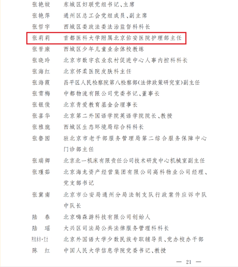为表彰先进、树立榜样,激励首都广大妇女自尊自信、自立自强,奋进新征程、建功新时代,北京市妇女联合会、北京市总工会、北京市人力资源和社会保障局决定,授予600人北京市三八红旗奖章称号,授予300个单位北京市三八红旗集体称号。北京佑安医院张莉莉喜获北京市三八红旗奖章。张莉莉同志以坚定的信念、无私的奉献精神和卓越的专业能力,在传染病防治领域画下了浓墨重彩的一笔,这份殊荣实至名归。