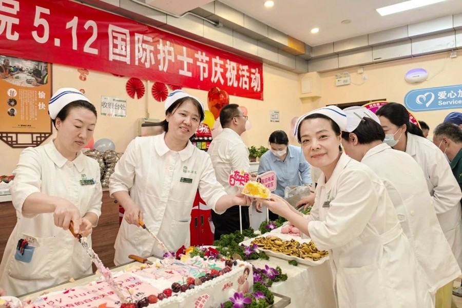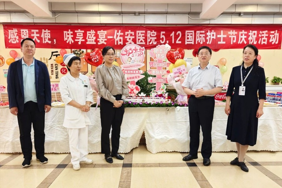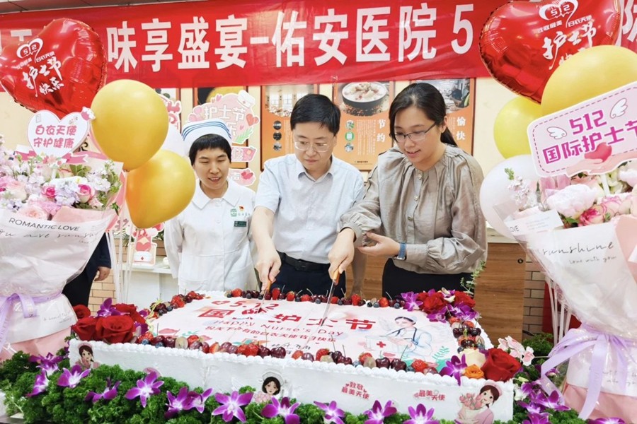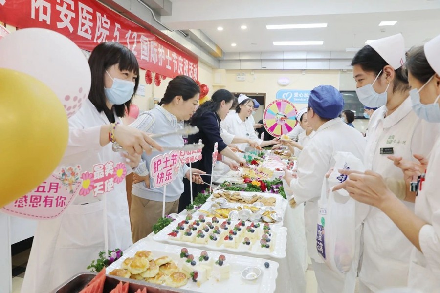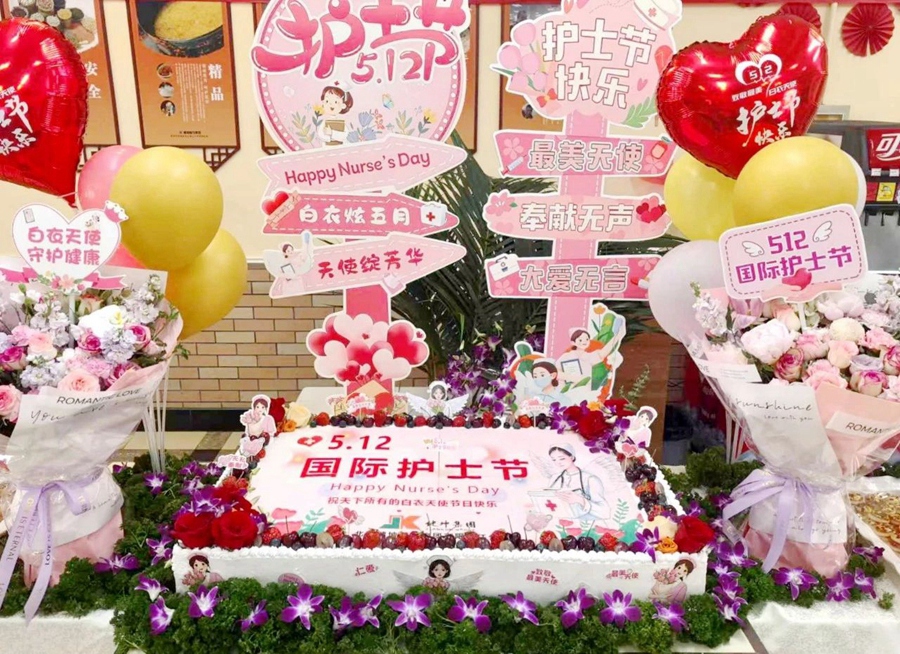 在第114个国际护士节到来之际,5月12日中午,北京佑安医院总务处、护理部在职工食堂举办“美食节”,把美好的祝福和香甜的美味送给白衣天使。党委副书记王建敏、副院长胡中杰、总务处、护理部的领导们一起给所有的护士们送蛋糕、送祝福。