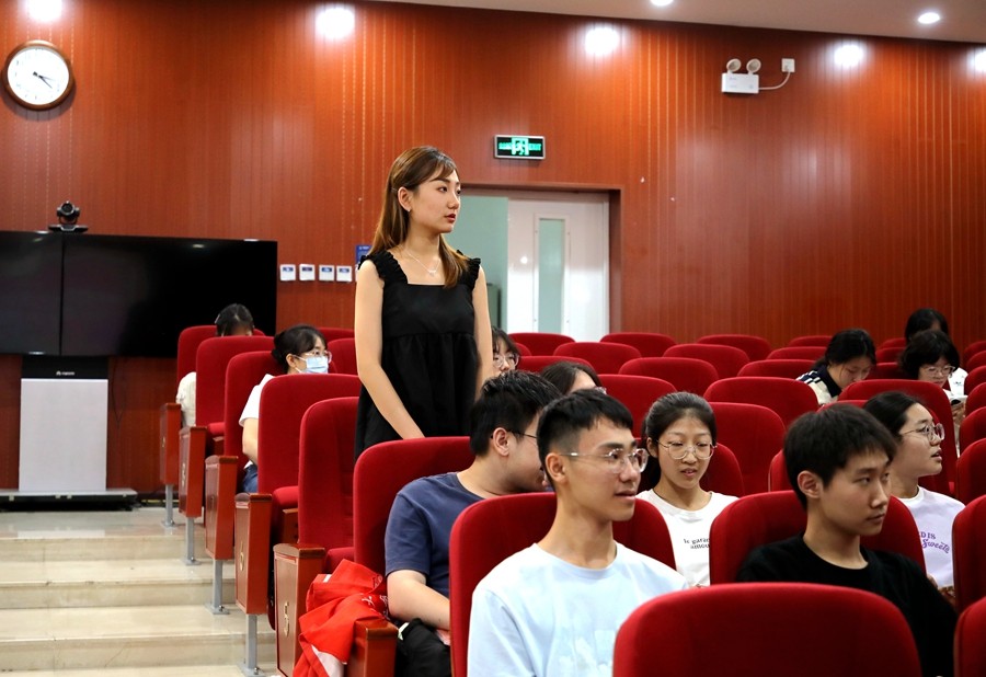 首都医科大学研究生刘家琛作为学生代表,以《点燃生命的希望》为题,深情分享了自己参与无偿献血和捐献造血干细胞的亲身经历与感悟,向广大青年学子发出“以热血践行医者誓言”的诚挚倡议。讲座现场还设置了互动有奖问答环节,师生踊跃参与,气氛热烈,有效加深了大家对献血知识的理解和记忆。