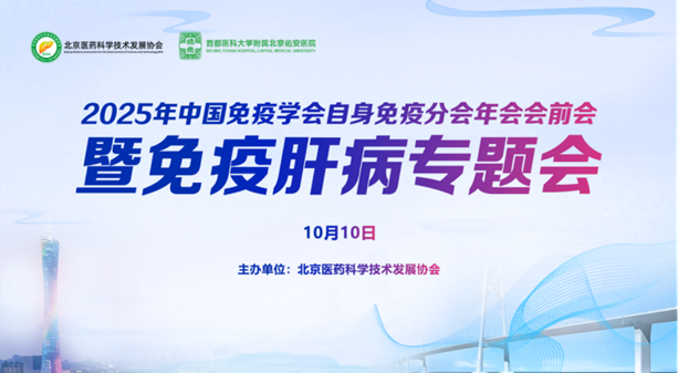 2025年10月10日下午,北京佑安医院肝病中心二科承办中国免疫学会自身免疫分会年会会前会-免疫肝病专题会在广州举办。会议主办单位专家闫惠平、徐斌、刘燕敏邀请免疫肝病、风湿疾病、基础研究等领域专家,从免疫肝病临床和机制两方面进行专题讲座。