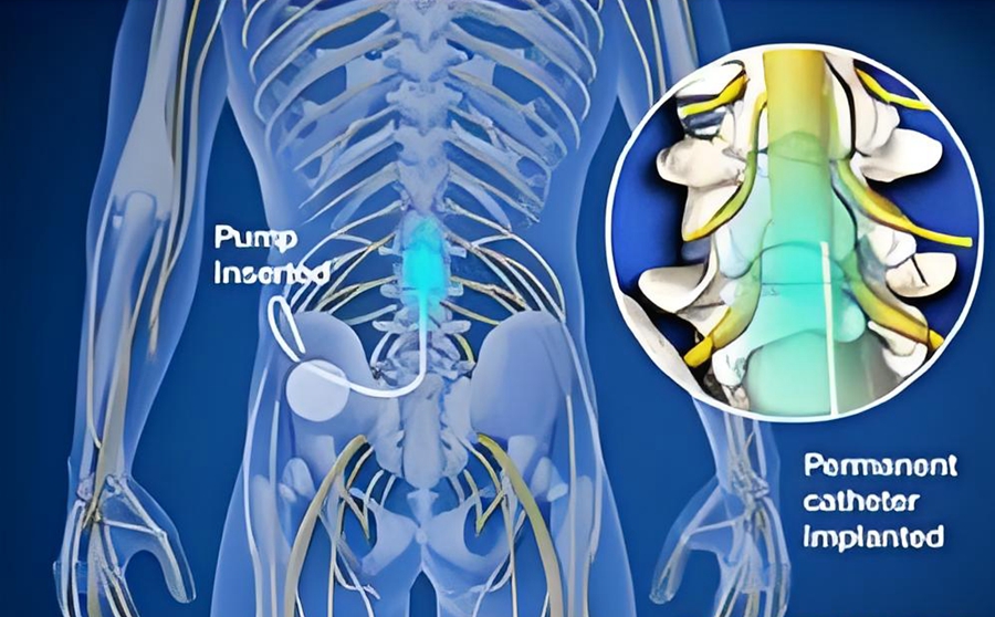 它是一种先进的疼痛管理设备,通过一个微创手术,将一根极细的导管精准放置于包裹脊髓的蛛网膜下腔内(这里充满了脑脊液,是疼痛信号向大脑传递的关键通道),导管的另一端连接一个埋置于腹部皮下、约光盘大小的小泵。泵囊内储存着高浓度的吗啡药液,由电池驱动,通过编程控制,能够24小时持续、精确地向中枢靶点输注微量的镇痛药物,阻断疼痛信号向大脑皮层传递,产生镇痛作用的技术,具有起效快、镇痛效果确切、药物用量小、药物不良反应少等优点。