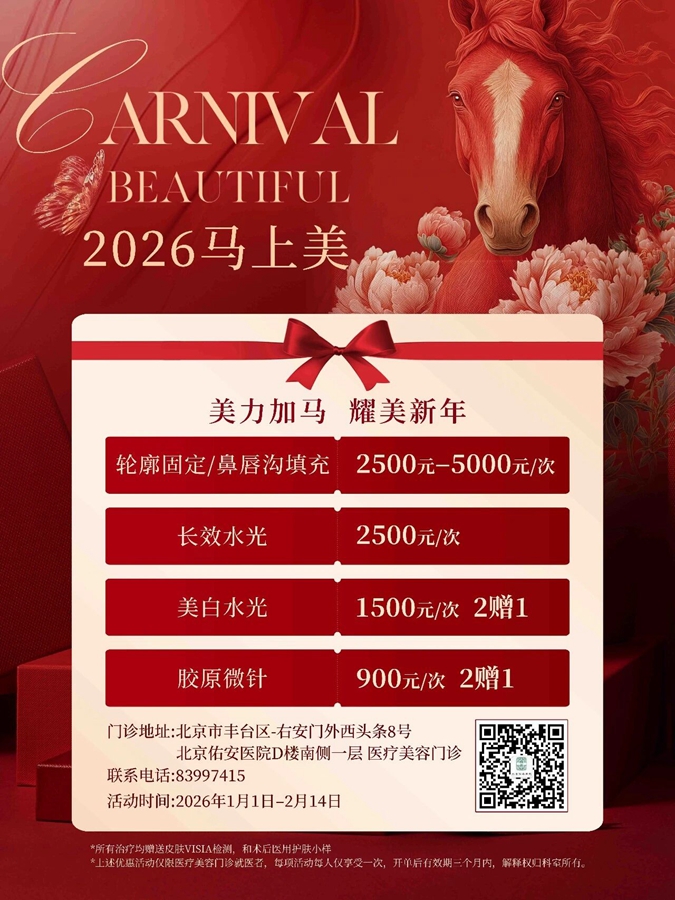 为衷心回馈大家一年的信任与陪伴并助您以最美的姿态迎接丙午马年的到来,我们特别准备了 “周年感恩•新春焕美” 系列福利!即日起到医美门诊治疗,即有机会享受多重惊喜礼遇与精美新春礼品,让您的变美之旅,更有温度,更多喜悦。欢迎前来咨询,开启您的新年焕新计划!