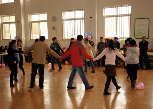 来自佑安医院、首医附中及周边兄弟单位的52名青年相聚在首医附中食堂,共同做游戏,进行才艺表演。现场装扮得温馨浪漫,气氛热情轻松,青年们一起进行“爱的抱抱”、“趣味自我介绍”、“真心话大冒险”等游戏。现场还为大家准备了水果和干果,还有纪念品,大家参与热情,大胆表达。