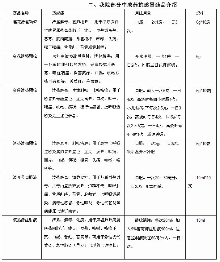 清开灵口服液(10ml*10支)、退热清咽颗粒(5g*10袋)、银黄颗粒(2g*16袋)、金花清感颗粒(6g*6袋)。