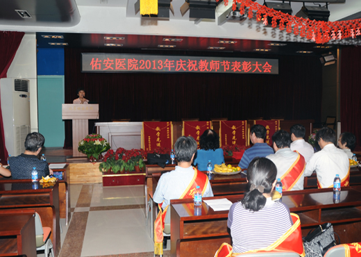 近日,佑安医院院隆重召开2013年教师节庆祝大会暨表彰大会。李宁院长、李国庆副院长出席了大会,医院教学督导专家、优秀教师及部分教师代表100余人参加了大会。大会由教育处孙国平处长主持。