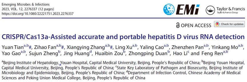 近期,首都医科大学附属北京佑安医院任锋教授科研团队在国际期刊《Emerging Microbes & Infections》(IF=19.568)发表了题为“CRISPR/Cas13a-assisted Rapid and Portable HBV DNA Detection for Low-Level Viremia Patients”的学术论文,该团队利用CRISPR/Cas13a检测新技术,联…【详细】