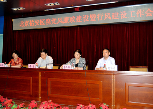 近日,北京佑安医院党委召开中心组学习扩大会议,暨2015年第一次党风廉政建设专题会议。院领导班子成员全体出席了会议,涉及人、财、物、基建、采购等重点职能科室主任参加了会议。会议由党委书记李玉梅主持。会上大家共同学习了国家卫生计生委贯彻落实《建立健全惩治和预防腐败体…【详细】