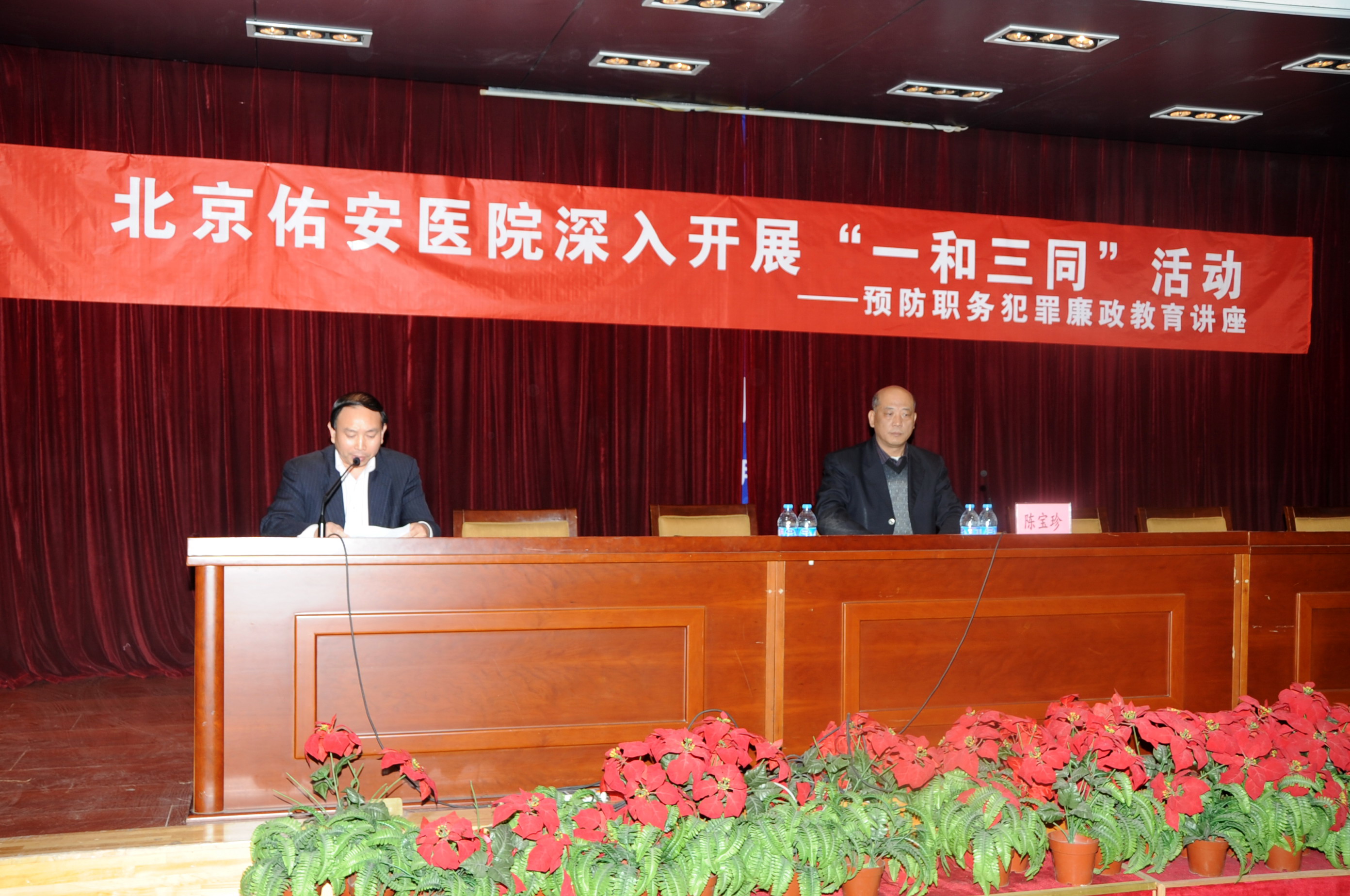 为更好地贯彻落实《北京市卫生局关于开展“和谐医患,同拒红包、同抵回扣、同葆健康”(以下简称“一和三同”)活动的实施意见》,切实增强医务人员自觉性和紧迫感。11月13日下午,首都医科大学附属北京佑安医院特邀丰台检察院陈宝珍主任在报告厅开展预防职务犯罪廉政…【详细】