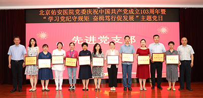 北京佑安医院党委召开庆祝中国共产党成立103周年暨“学习党纪守规矩 奋楫笃行促发展”主题党日