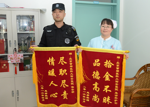 今天上午,曾来北京佑安医院就诊的河北张家口籍患者陈先生来到北京佑安医院保安队值班室,给急诊科、保安部送来锦旗两面,上写“佑安医院急诊科护士:拾金不昧、品德高尚”、“保安部保安:尽职尽责、情暖人心”,对佑安医院急诊护士拾金不昧、保安积极联系失主的行为表示感谢。20…【详细】
