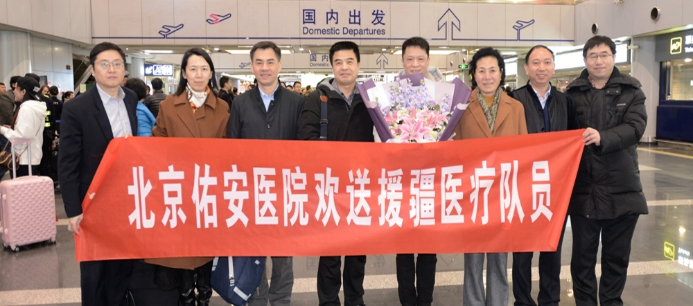 3月1日清晨,北京佑安医院党委副书记向海平、党办主任张晓静、医务处处长胡中杰、普通外科中心常务副主任林栋栋一行人来到首都机场,欢送北京佑安医院援疆干部、普通外科中心副主任医师曾道炳出征。曾道炳医师作为北京市第九批第三期援疆队员将赴新疆和田地区人民医院执行…【详细】