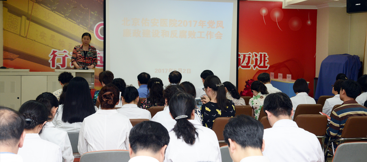 5月2日下午,北京佑安医院召开了2017年党风廉政建设和反腐败工作会。院领导、全体中层干部、统战人士代表参加了此次大会,会议由党委副书记、纪委书记向海平同志主持。 会上,党委书记李玉梅总结回顾了2016年佑安医院党风廉政建设和反腐败工作所做出的成绩及存在的问…【详细】