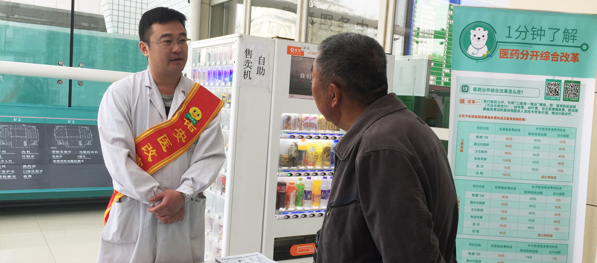 如今,走进北京佑安医院门诊各楼层,在候诊患者中不时能看到一个个身穿绿色马甲的医务人员轻声询问患者诉求,开展一对一的满意度调查。截止今天她们已经对200多人进行了问卷调查,调查问卷中有这里的问题:“您对此次医药分开综合改革持什么态度?” 、“对于医事服务费,…【详细】