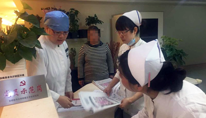 如今,患者到北京佑安医院住院治疗时,门诊医生开具住院证后,患者及其家属到医院住院服务中心办理入院手续。在这里,医务人员会严格核实患者的姓名、性别、出生年月、身份证件号码、住院患者编号、家属的联系方式等个人信息,并为患者佩戴腕带。同时,会为患者及家属讲解…【详细】