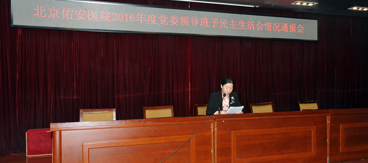 根据市卫计委和市医管局党委要求,2017年2月21日下午,北京佑安医院党委召开了2016年度专题民主生活会。党委书记李玉梅同志主持会议,医管局党委第一联络组组长、组织人力资源管理处处长张金保同志对会议作了点评,局监事会监事孙雯雯同志参会。 会前,党委领导班子…【详细】
