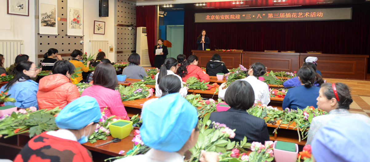 在“三八”国际劳动妇女节到来之际,北京佑安医院工会先后于3月3日和3月6日组织了两场别开生面的插花艺术讲座,特邀插花花艺大师谢晓荣和花艺讲师张燕讲授花艺基本知识并做现场演示辅导,活动中工会主席刘香玉代表医院党委和工会向广大女职工致以节日的问候。 插花是…【详细】