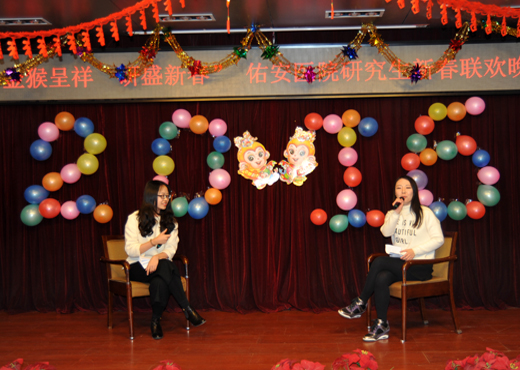 1月22日,由教育处主办,我院研究生党支部和研究生会承办,“金猴呈祥 研盛新春”2016年首都医科大学附属北京佑安医院研究生新春联欢会在报告厅隆重举行。工会主席刘香玉,党办主任崔丹,教育处主任孙国平,科研处主任张永宏,消化中心丁惠国主任及各位老师出席本次联欢会。