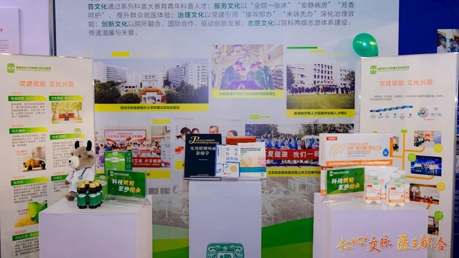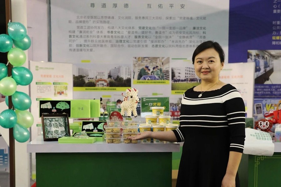 长期以来,北京佑安医院党委锚定宣传思想文化核心,以思想引领、行为规范、服务提升、管理增效、持续发展为五大抓手,深耕“党建铸魂、文化赋能、品牌塑形”实践路径。党政工团协同发力,成功构建起党建、廉洁、书香、科普、服务、治理、创新、志愿八大文化体系,以文化软实力凝聚发展硬动能,彰显专科医院特色文化魅力。在展览的互动环节:“科技创新,引领发展”展区,医院研发的“益酐复合蛋白固体饮料”“退黄合剂”,为肝病患者康复注入科技力量。“佑安有爱 袋袋相处”文创DIY,在北京佑安医院专属布袋上自己动手印制心仪图案,把佑安暖意带回家;“一口优酪 互佑平安”特色酸奶品鉴,低乳糖、富益生源,有利于消化道菌群的平衡,对于有消化不良,菌群失衡的患者有一定作用;医院文化文创展示,把院训、院树、院花、文化理念具象化,更具传播力。