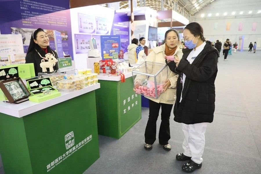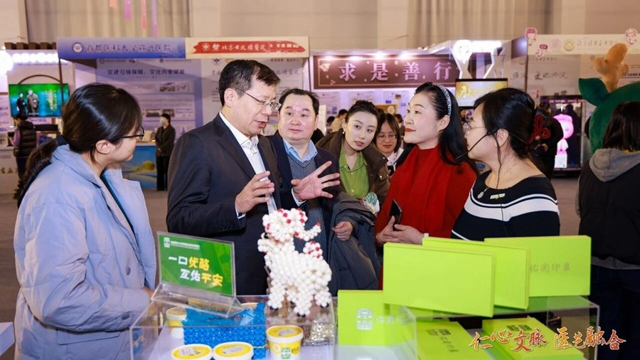 与会同时,以“仁心文脉、医艺融合”为主题的“文化超市”展览活动同步拉开帷幕。活动现场,包括北京佑安医院在内的28家医疗卫生机构精心设计、各具特色的展位依次排开,集中展示了各单位在长期实践中凝练而成的特色医院文化、品牌服务理念以及一系列创意十足的文创产品,彰显行业文化底蕴与医药科技新质生产力相互促进、双向赋能,以优质卫生健康文化服务为行业自身发展固本培元,推动卫生健康文化事业、文化产业繁荣发展,更好满足和适应人民群众对美好健康生活的新期待。