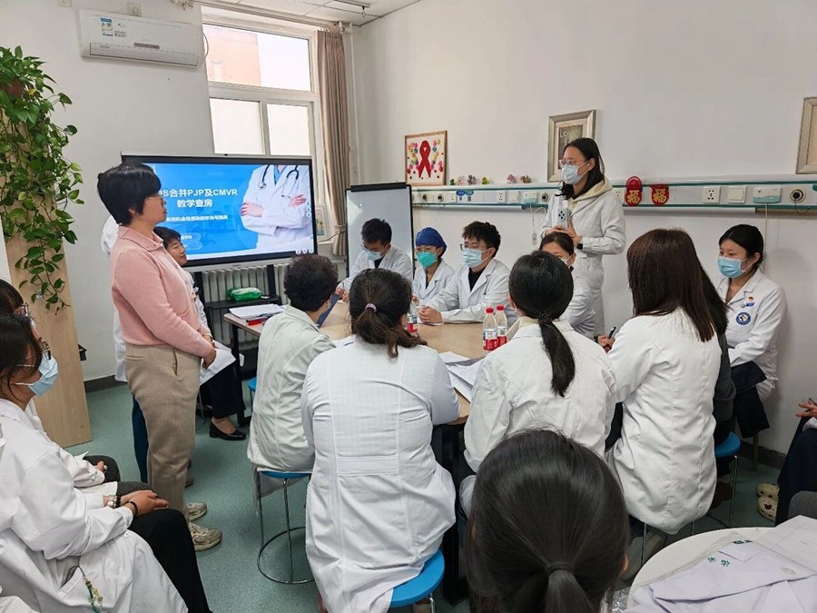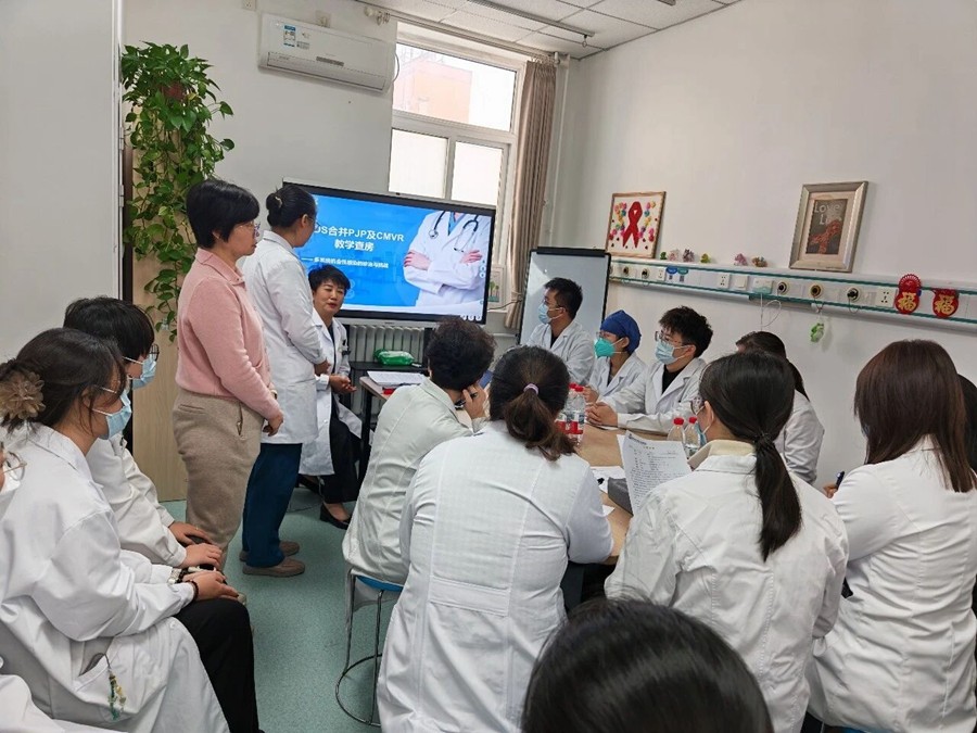 为进一步提升规培医师感染性疾病临床诊疗能力、规范教学查房流程,2025年12月11日下午,北京佑安医院感染与免疫医学科组织开展了一场以“艾滋病合并耶氏肺孢子菌肺炎(PJP)与巨细胞病毒性视网膜炎(CMVR)”为核心病例的高质量教学查房活动。本次活动特别邀请北京友谊医院、北京航天医院内科基地及全科基地教学督导专家莅临现场指导,科室教学骨干与规培医师积极参与,通过“病例汇报-床旁实践-深度研讨-督导反馈”的完整闭环流程,充分展现了我科在临床教学与感染性疾病诊治领域的专业底蕴。
