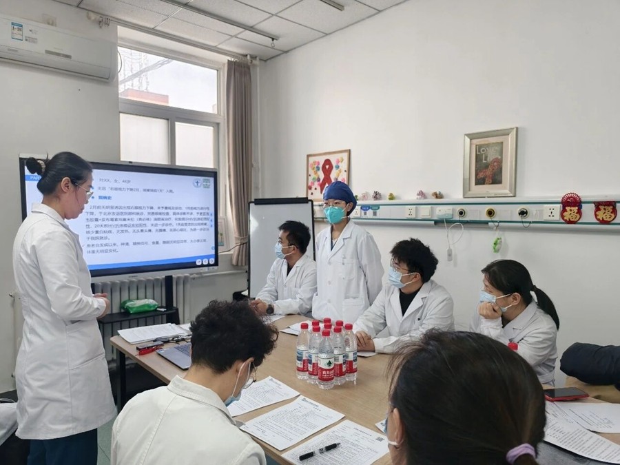 本次教学查房由感染与免疫医学科张彤主任主持,姜太一主任作为主查医师,北京友谊医院规培生徐芳(规培第二年)、王宇豪(规培第二年)和北京世纪坛医院规培生谭朝阳(规培第三年)共同参与。感染与免疫医学科教学团队在教学查房前进行了精心的教学设计,旨在通过这一真实、复杂的临床场景,引导规培医师超越单一疾病诊疗,建立 “急症、核心症状优先、系统筛查、统筹管理” 的整合性临床思维。