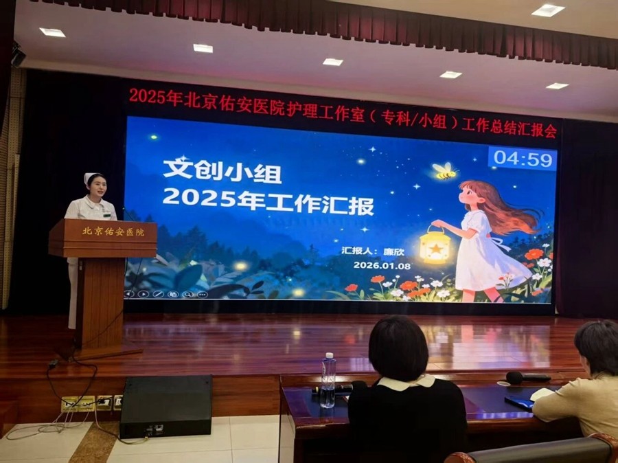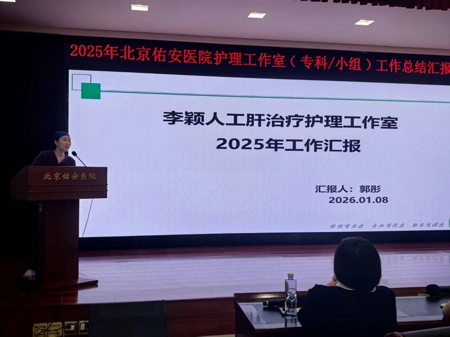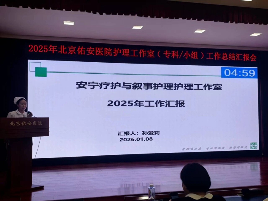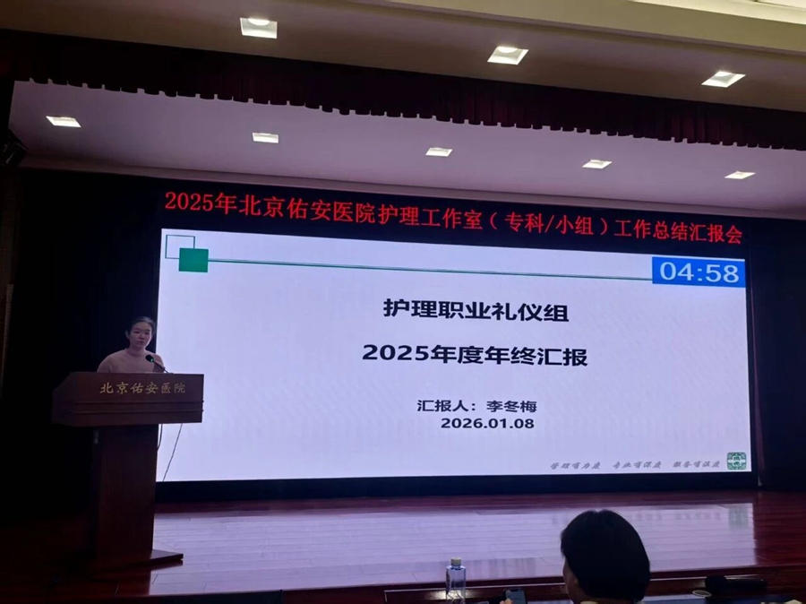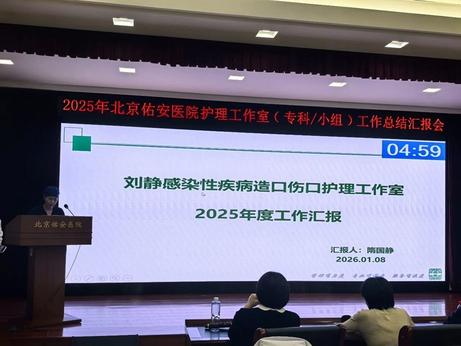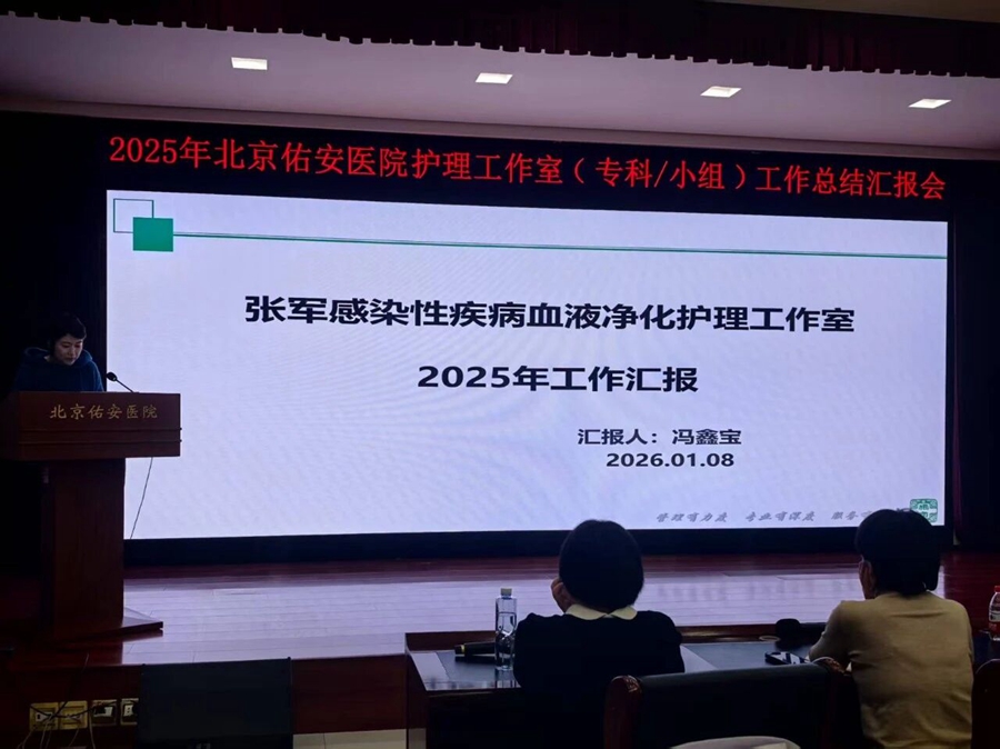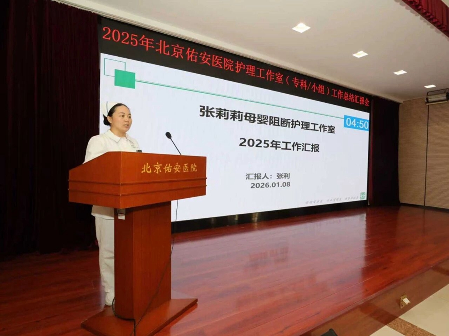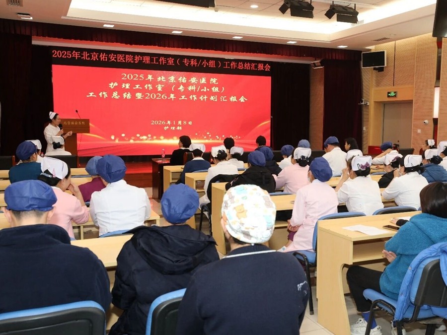 2026年1月8日,北京佑安医院顺利举办2025年度护理工作室、专科及小组年终工作汇报会。护理部主任张莉莉、副主任郭会敏、工作室督导李秋云、各中心护士长、科室护士长,以及各工作室、专科小组领军人与代表共同出席了本次会议。