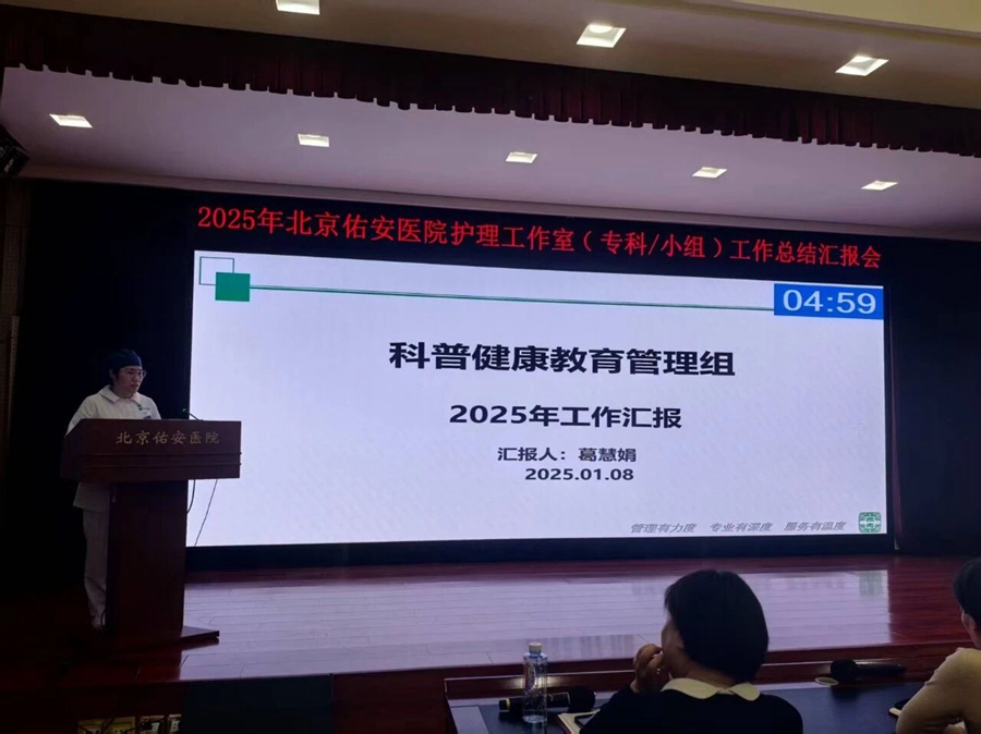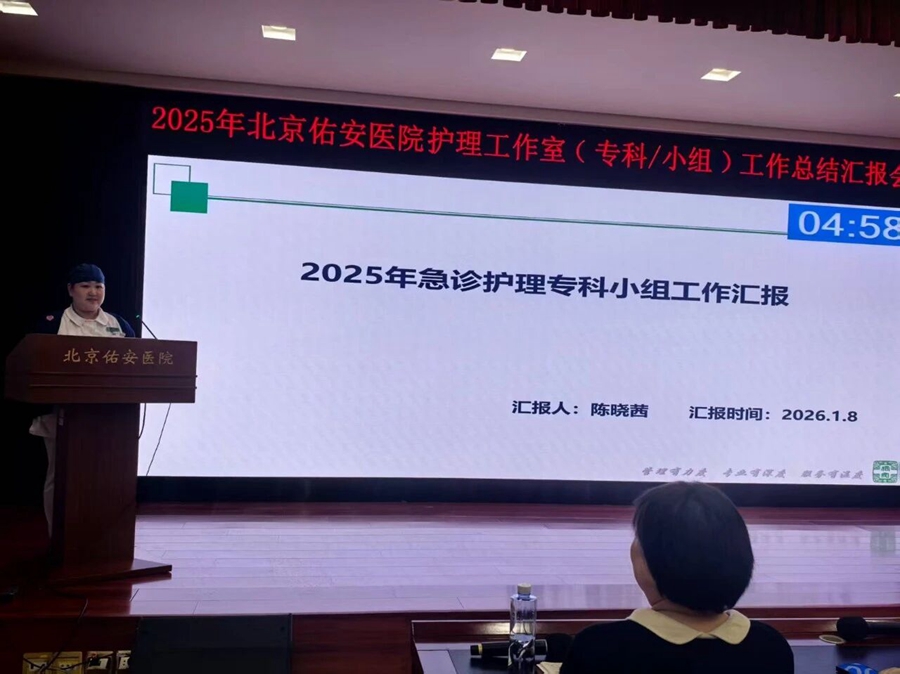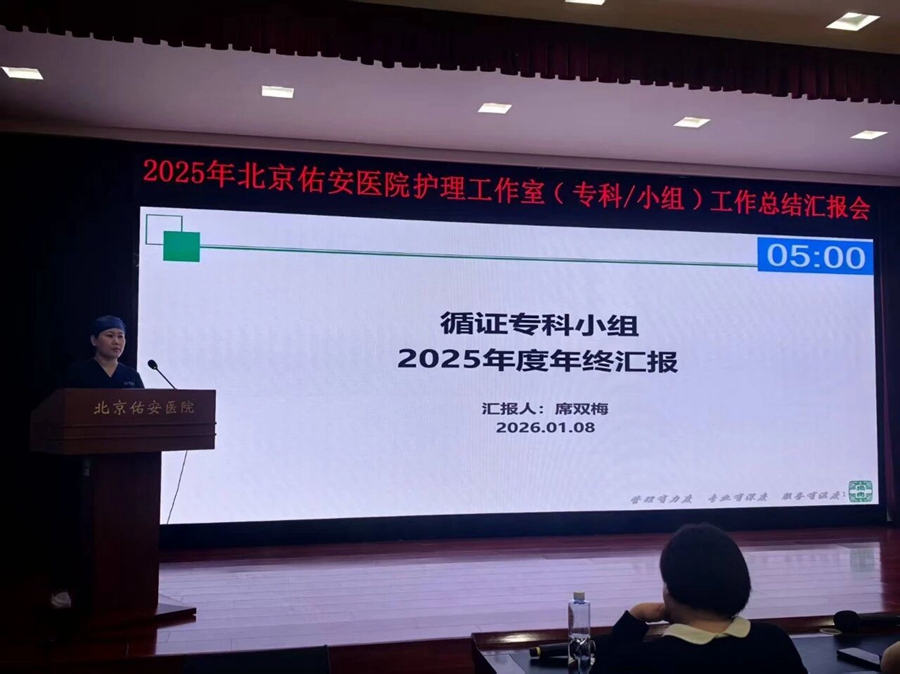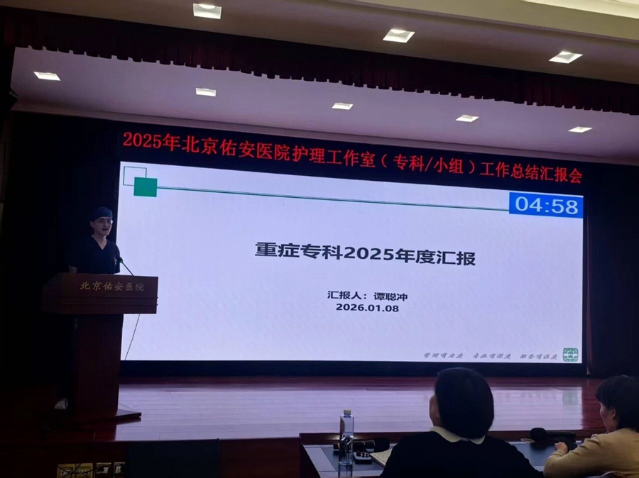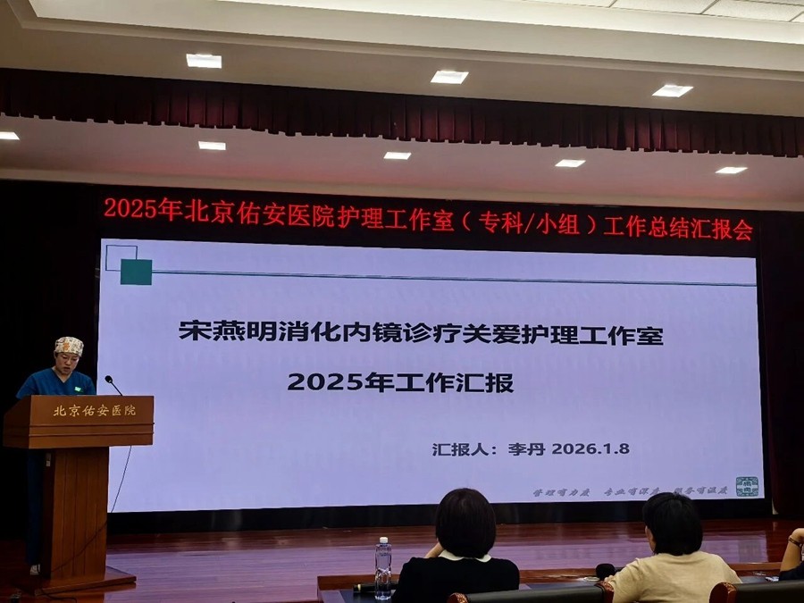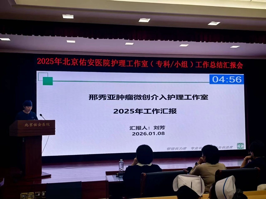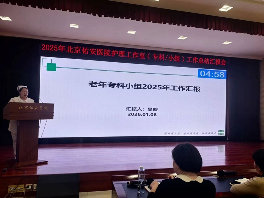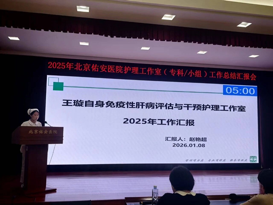 2026年1月8日,北京佑安医院顺利举办2025年度护理工作室、专科及小组年终工作汇报会。护理部主任张莉莉、副主任郭会敏、工作室督导李秋云、各中心护士长、科室护士长,以及各工作室、专科小组领军人与代表共同出席了本次会议。