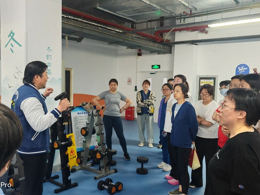 活动伊始,工会副主席仇淑华与大家面对面交流:大家平日里坚守岗位、辛苦忙碌,常常忽略了自身健康,医院党委、工会一直牵挂着每一位职工的身心健康,创造条件建设职工活动阵地,希望大家通过轻松有趣的健身沙龙,在忙碌间隙动起来、放松下来,舒缓疲惫、释放压力。也鼓励大家从今天开始,把健身融入日常,照顾好自己的身体,以更健康的体魄、更愉悦的心情投入工作、拥抱生活。
